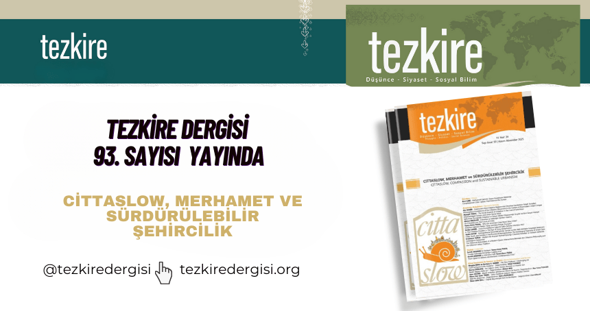 Tezkire'nin 93. sayısı “Cittaslow, Merhamet ve Sürdürülebilir Şehircilik” başlıklı YAYINDA